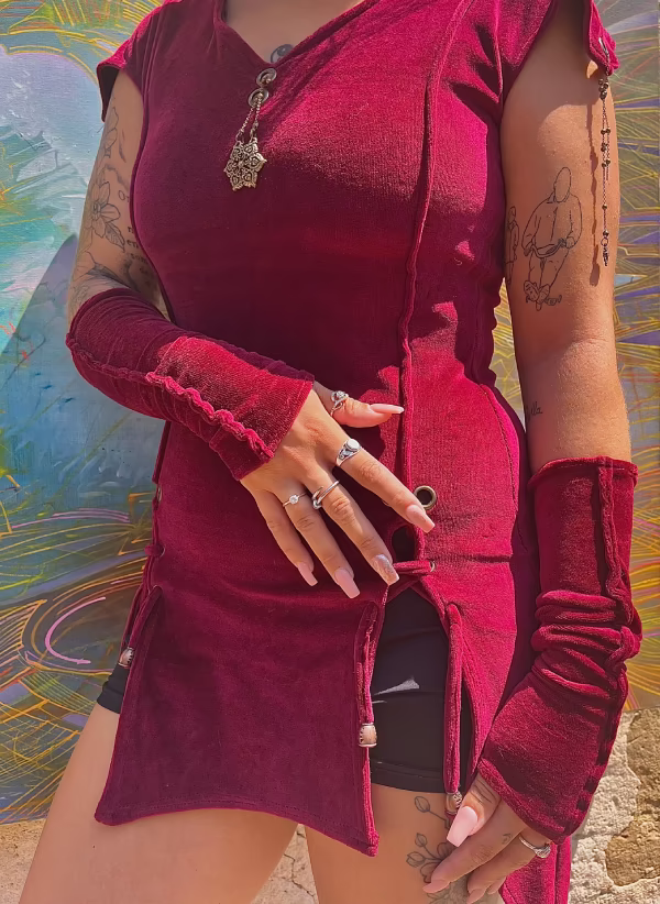 Cassiopée est une tunique festival femme pensée pour celles qui refusent de choisir entre style et confort. Fabriquée à la main en Isère dans un French Terry ultra-doux au toucher peau de pêche, elle s’adapte à toutes les saisons et à tous les moments — des soirées en plein air aux festivals les plus intenses.