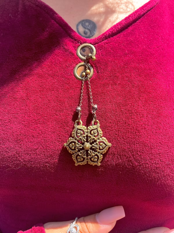 La tunique Cassiopée se suffit à elle-même. Coupe asymétrique cintrée, laçages latéraux avec œillets et perles, pendentif mandala amovible — chaque détail est pensé pour une silhouette affirmée et un style immédiatement reconnaissable. Idéale pour les festivals comme pour le quotidien.
