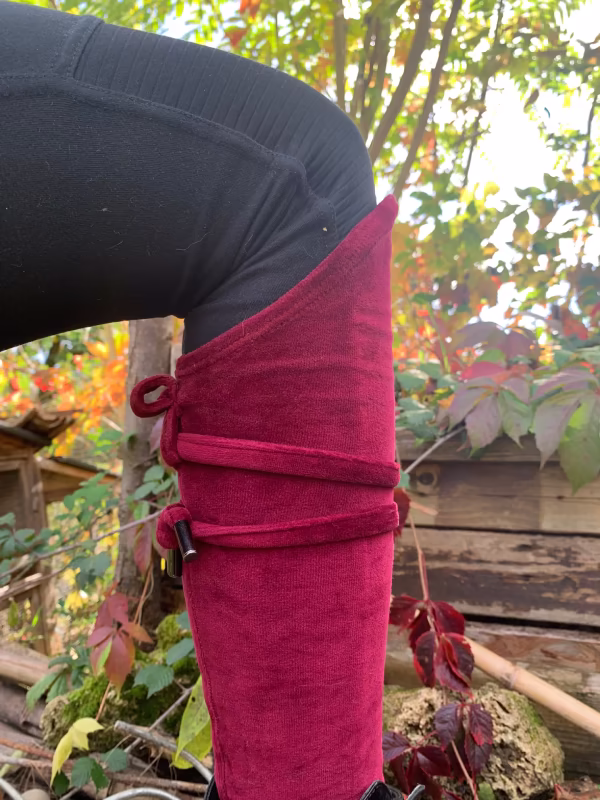 L’ensemble complet ajoute à la tunique une capuche réversible généreuse à double face, une paire de guêtres et des mitaines assorties. Un look total cohérent et modulable, conçu pour les longues nuits de festival et les journées fraîches en plein air. Chaque élément se porte séparément ou ensemble selon l’envie.